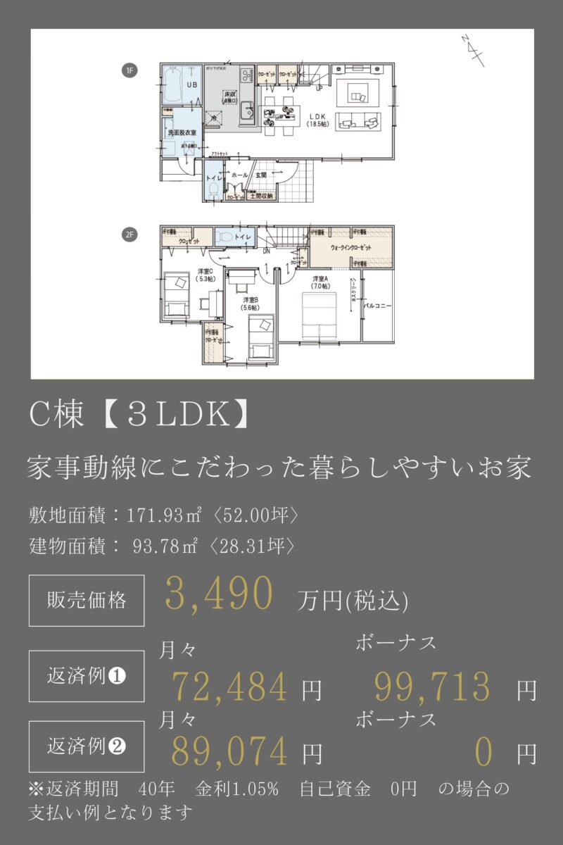 | 建物面積(延床) | 93.78m²(28.3坪) |