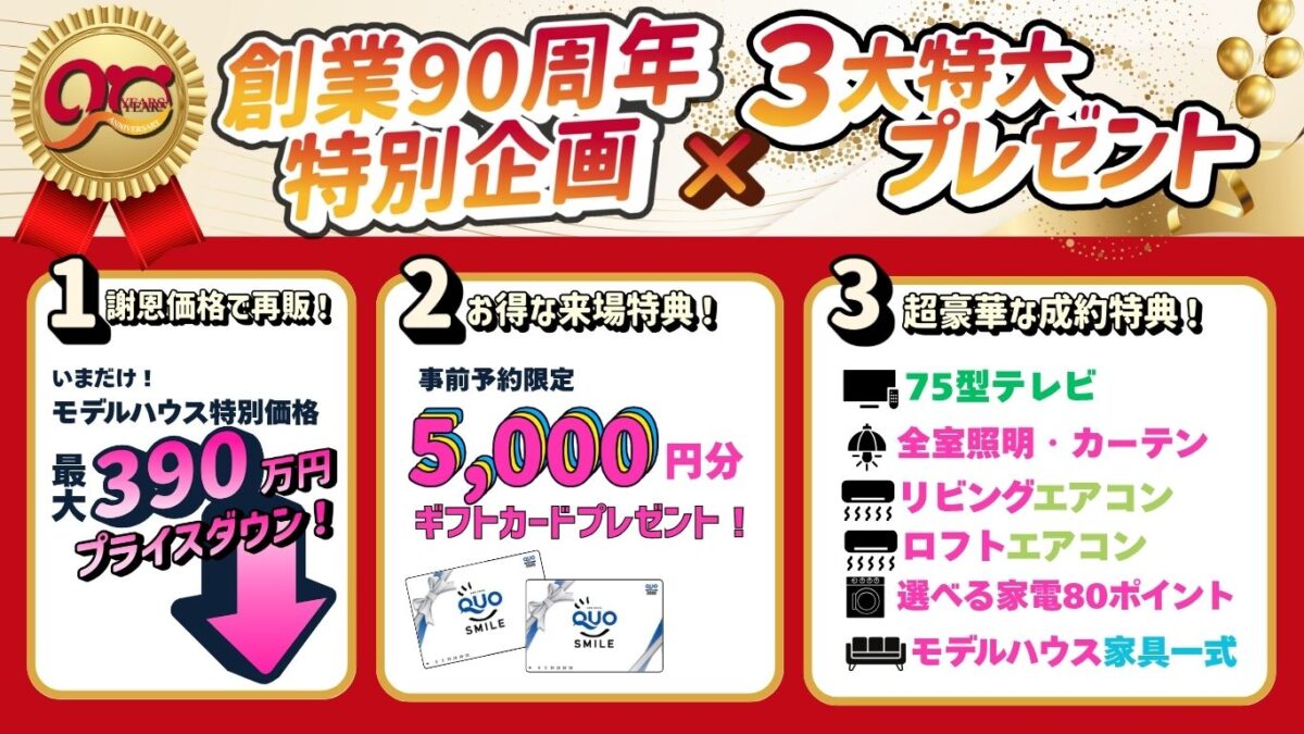 創業90周年特別企画×3大特大プレゼント