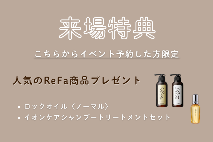 ご予約+事前アンケート記入で ReFa商品プレゼント!