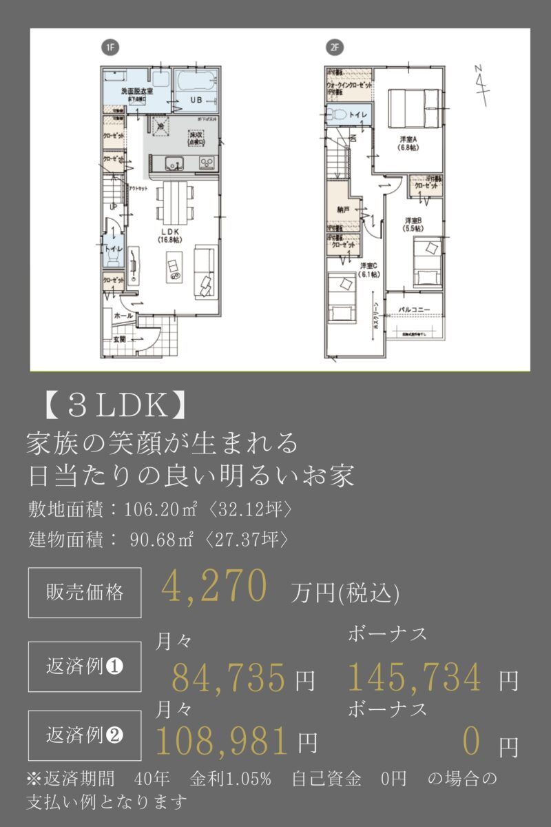 建物面積(延床)90.68m²(27.37坪)