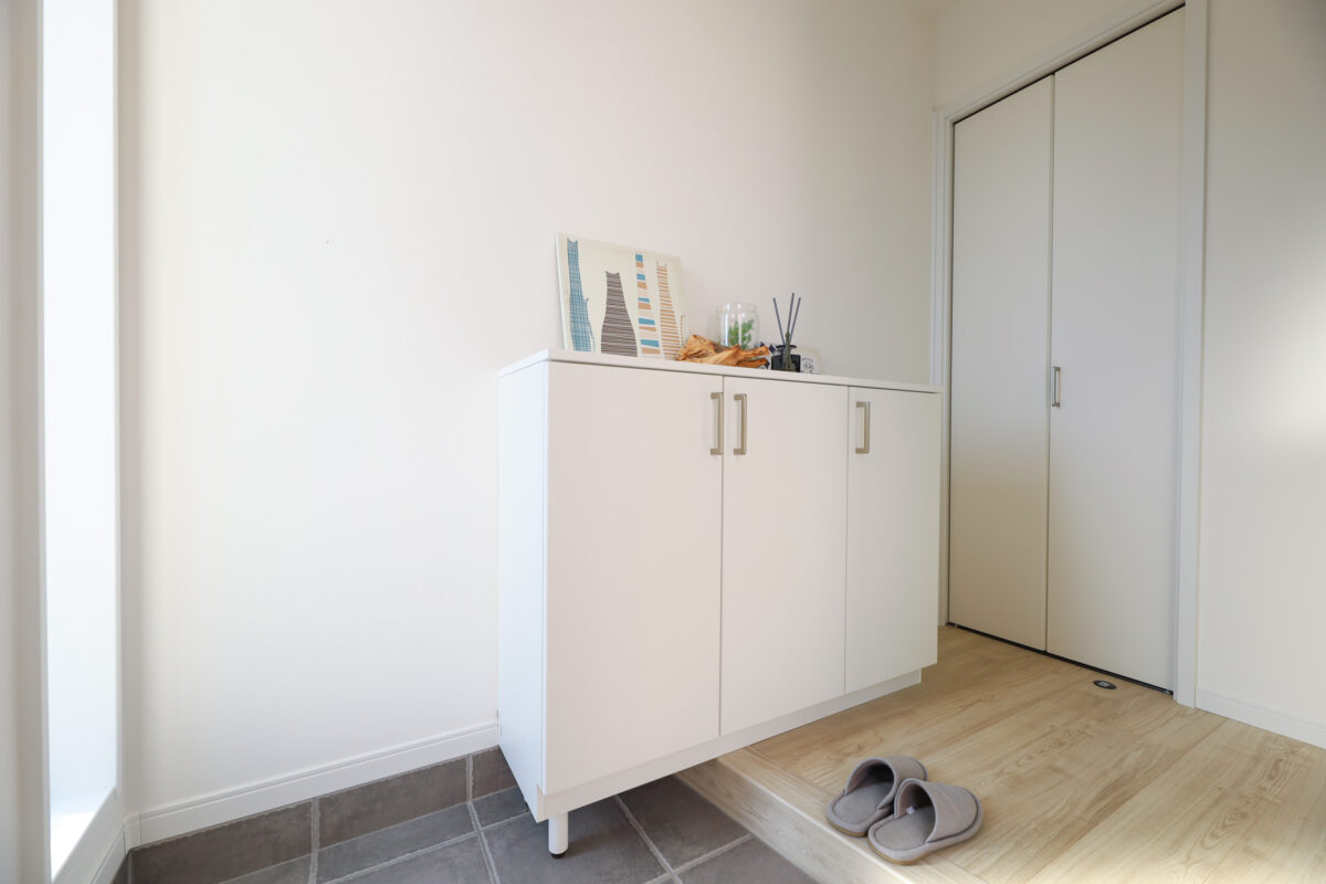 靴はもちろん、傘や掃除道具も隠して収納できるクローゼット付。生活感を抑え、すっきりとした空間が、ワンランク上の住まいを印象付けます。